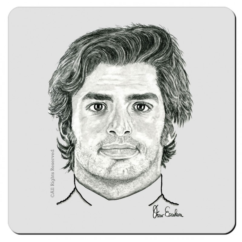Tamaño: 5 x 5 Cms. - IMAN DE CARLOS SAINZ (Hijo), color blanco, impresión B/N a una Cara